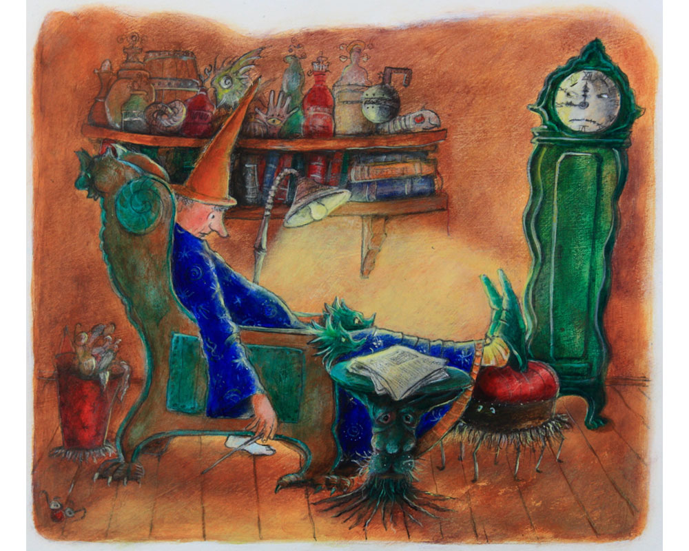 Sein ruhiges und zufriedenes Leben gerät aus den Fugen, als er merkt, dass seine Zauberkräfte schwinden… Zum Glück kümmern sich die Kinder um ihn, und auch eine kleine schwarze Katze spielt eine große Rolle, dass sich zum Schluss alles wieder zum Guten wendet.